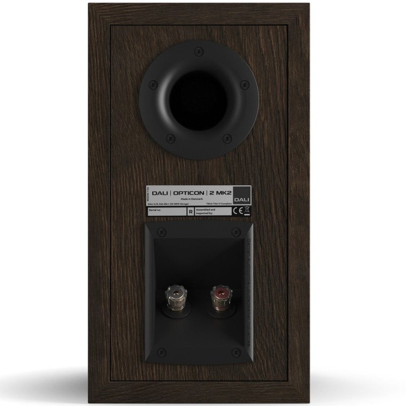 The Opticon 2 MK2 pairs a 6.5-inch wood fibre cone woofer with a 29mm soft dome tweeter — a step up from the 28mm unit in the original Opticon 2, delivering lower distortion, higher power handling, and extended low-frequency response. The woofer uses DALI’s patented SMC (Soft Magnetic Compound) magnet system, which reduces mechanical distortion caused by hysteresis and eddy currents in the motor assembly, resulting in a cleaner, more relaxed midrange with minimal third-order distortion.